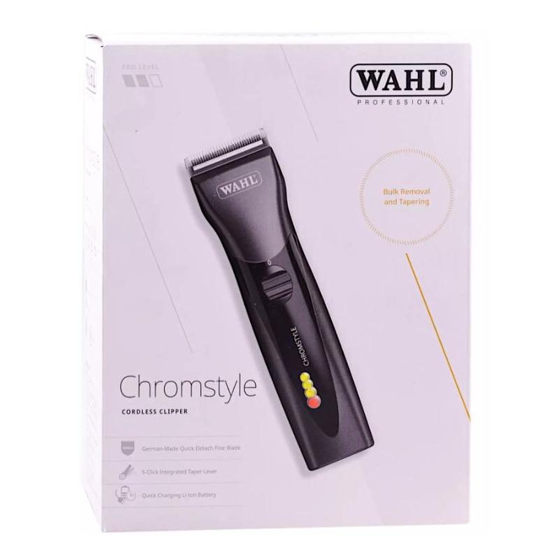 Profesionální strojek na vlasy Wahl ChromStyle 1871-0473 disponuje motorem o výkonu až 5000 otáček za minutu, je tak vhodný pro všechny typy vlasů. Ergonomický design strojku skvěle padne do ruky, práce s ním je tak velmi pohodlná a snadná. K tomu přispívá také tichý, klidný a stabilní chod. Hlavice strojku Magic Blade o šířce 46 mm umožňuje nastavení výšky střihu od 0,7 mm do 3 mm pomocí posuvné páčky na hlavici strojku. Hlavici lze ze strojku snadno sejmout a opět nasadit. Doba provozu strojku je až 90 minut, doba nabíjení pak 60 minut. O stavu baterie informují LED diody na těle strojku. V případě vybití strojku v průběhu stříhání jej lze dále používat po zapojení do zásuvky. Součástí balení jsou plastové nástavce o velikosti 3 mm, 6 mm, 9 mm a 12 mm, nabíjecí stojánek a adaptér, čisticí kartáček a olej.