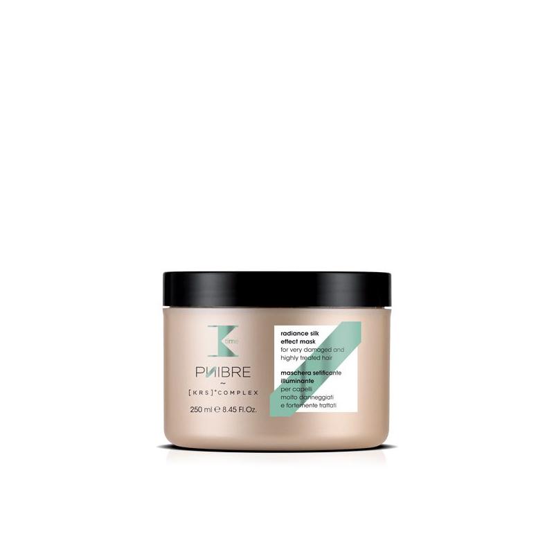 Rozjasňující hedvábná maska zanechává vlasy měkké, hedvábné a zářivé. Synergie účinných látek v komplexu [KRS] + prodlužuje výhody léčby Salon Phibre.